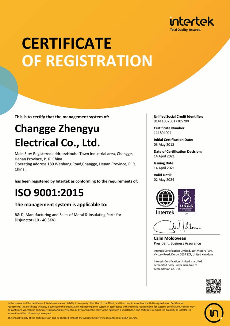 質(zhì)量管理體系認證證書